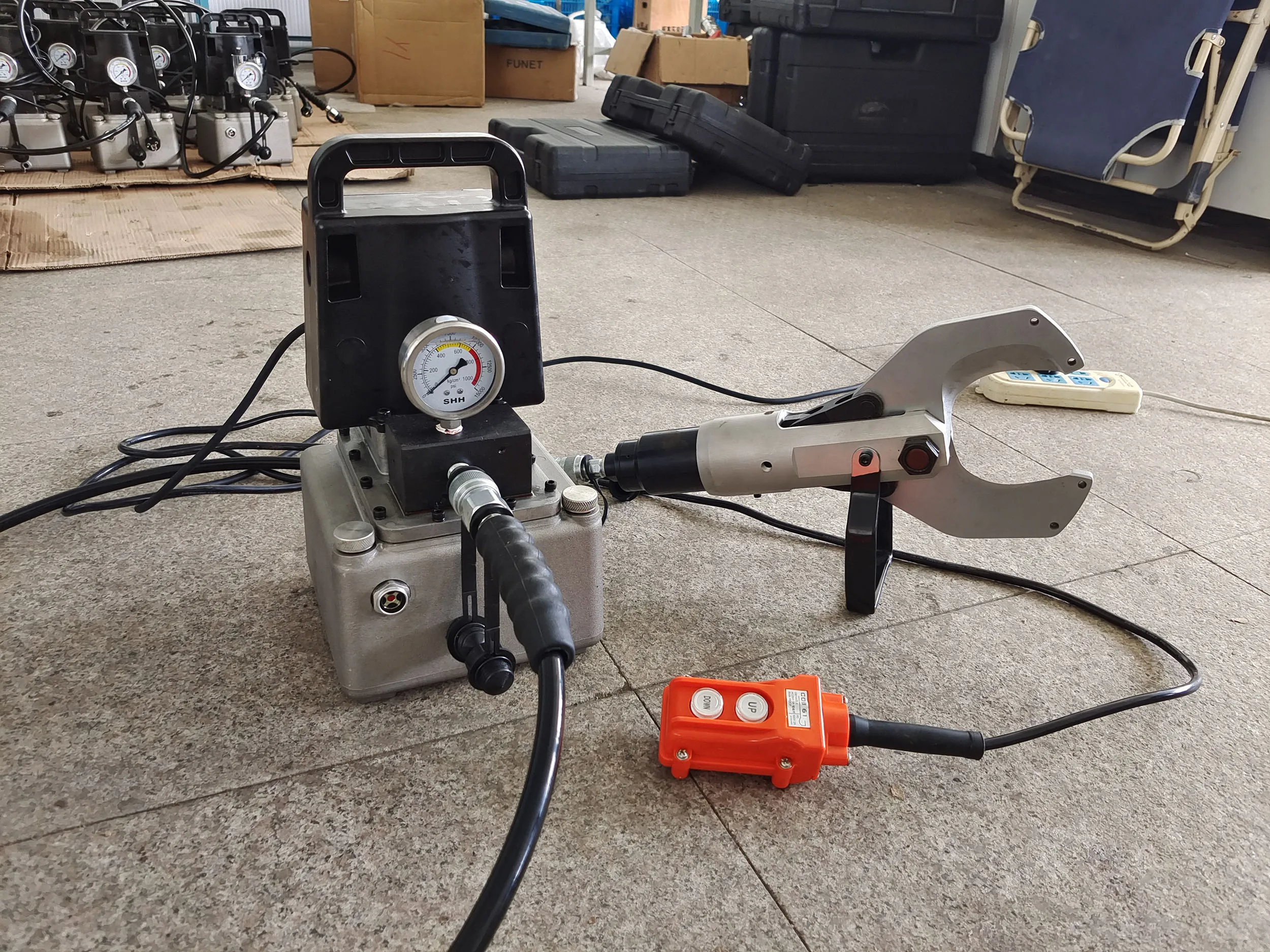 Note that when release "ON" button, the oil will automatically return back to oil tank, make ram retract, it means that the hydraulic pump EHPM-70ZS is not able to hold pressure, it is ideal for the application that do not need to hold pressure: cutting, punching, bending, etc.